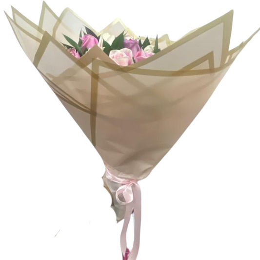 Ramo Encanto Pastel con 50 Rosas y Decoración de Diferentes Tonos