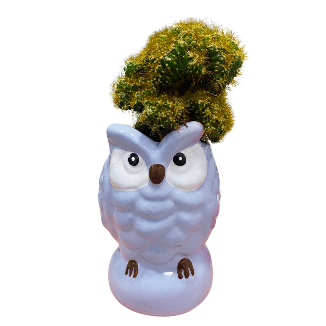 Agrega un toque divertido a tu hogar con nuestra planta de cerámica en forma de búho, que sostiene un cactus vibrante. Ideal para dar vida a cualquier espacio, es un regalo original para amantes de la naturaleza.